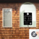 Eine schwarze Öffnungszeit Fenster Dekorieren und Fensterklammern mit Business Logo, QR Code, Ihren persönlichen Social Media Icons und Kontaktdetails. Ein personalisiertes Schaufenster für Schaufenster und Türschilder. Ideal für einen Geschäftshändler, der seine Kunden über seine Öffnungszeiten informieren möchte.
