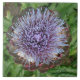 Artischocke, die geblüht hat. Dieses Einzelteil kennzeichnet ein Bild einer reizenden großen lila Blume. Das Bild auf diesem Einzelteil wurde von einer digitalen Fotografie geschaffen.