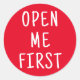 Öffnen Sie mich zuerst | Jegliche Hintergrundfarbe Runder Aufkleber