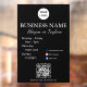 Entworfen in einem einfachen, modernen Schriftstil mit QR-Code und Social Media. Es ist perfekt für Cafés, Boutiquen, Salons, Studios oder Büros, die eine saubere und minimalistische Ästhetik schätzen. Passen Sie Ihren Geschäftsnahmen, Ihr Logo und Ihre Öffnungszeiten leicht an, um Ihre Marke zu unterstreichen. Ideal für Glastüren oder -fenster, um Ihrem Geschäft ein gepflegtes und einladendes Erscheinungsbild zu geben.