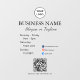 Entworfen in einem einfachen, modernen Skriptstil mit QR-Code und sozialen Medien. Es ist perfekt für Cafés, Boutiquen, Salons, Studios oder Büros, die eine saubere und minimalistische Ästhetik schätzen. Passen Sie Ihren Geschäftsnahmen, Ihr Logo und Ihre Öffnungszeiten leicht an, um Ihre Marke zu unterstreichen. Ideal für Glastüren oder -fenster, um Ihrem Geschäft ein gepflegtes und einladendes Erscheinungsbild zu geben.