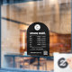 Öffnungszeiten mit QR-Code und schwarzer Pfeil Fensteraufkleber