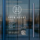 Präsentieren Sie Ihre Geschäftszeiten klar und professionell mit diesem modernen Open Hours-Fensteraufkleber. Entworfen mit einem sauberen Layout, Ihrem Logo und QR-Code sowie einer gut lesbaren weißen Schrift, ermöglicht dieses Schild Ihren Kunden, sofort zu sehen, wann Sie geöffnet sind. Ideal für Einzelhandelsgeschäfte, Salons, Cafés, Restaurants, Studios, Kliniken und dienstleistungsbasierte Unternehmen. Mit einem schnellen Scan können Kunden Ihre Website für Updates, Dienstleistungen, Speisekarten, Termine oder weitere Unternehmensinformationen besuchen. Einfach anzubringen und zu entfernen, ist dieser professionelle Fensteraufkleber perfekt für Glastüren und -fenster. Er reduziert Verwirrung über die Öffnungszeiten, verbessert das Kundenerlebnis und schafft einen gepflegten, vertrauenswürdigen ersten Eindruck, bevor Kunden das Geschäft betreten. Werten Sie Ihre Ladenfront mit einem einfachen, stilvollen Fensterschild auf, das Ihre Kunden informiert und