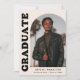 Stilvolle und trendige Ankündigung des Abschlusses mit dem Foto des Absolventen auf der Vorderseite mit einem Offset-Bogen-Foto. "Graduate" wird auf einem Elfenbein-Hintergrund in fett schwarzem Retro-Buchstaben dargestellt. Personalisieren Sie die Titelseite der Ankündigung des Abschlusses des Erzbischofs, indem Sie den Namen, die Schule und den Abschluss des Absolventen hinzufügen. Die Karte kehrt zurück, um weitere 3 Fotos mit Platz für den benutzerdefinierten Text anzuzeigen, wie z.B. künftige Unis, Karrierepläne, Angaben zur Graduierungspartei, etc. Die Creme Abschluss Ankündigung ist perfekt für Absolventen der High School und Uni.