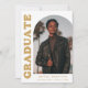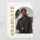 Stylish and trendy graduation party invitation featuring the graduate's photo on the front with an offset arch photo frame. "Graduate" is displayed in bold gold retro lettering on a white background. Personalize the front of the arch photo graduation party invitation by adding the graduate's name, school, and graduation year. The invite reverses to display your graduation party details. The white and gold graduation party invitation is perfect for both high school and college graduates.