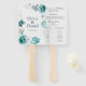 Behalt deinen Gästen während deiner Hochzeitsfeier cool und stilvoll mit unserem Hand Fan vom Off-White & Aquamarin Floral Wedding Program. Dieses einzigartige und praktische Hochzeitsaccessoire verdoppelt sich als Programm und bietet den Gästen unverzichtbare Informationen über Ihren besonderen Tag und behalte sie in der warmen tropischen Brise erfrischt. Mit einer bezaubernden Aquarellillustrierung wunderschöner aquamariner und weißer Blumen und Botanicals fügt dieser Handventilator Ihrer Hochzeitsdekoration eine Touch boho romantischer Eleganz hinzu. Jeder Off-White & Aquamarin Floral Wedding Program Handfan ist mit einem robusten Handgriff ausgestattet, der das leichtes Halten und Wellen ermöglicht und Ihren Gästen während der gesamten Zeremonie einen komfortablen und verlobten bleibe garantiert.