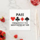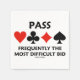 Lassen Sie andere beim nächsten Party- oder Brückenereignis mit diesen Papierserien mit den vier Kartenkarten-Anzügen und dem folgenden Bridge-Truism-Sprichwort, mit dem viele Brückenspieler übereinstimmen werden, ein Doppelschlag machen: "Pass Frequently The Most Schwierigt Bid".