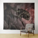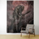 A hulking Ogre stands poised on a jagged mountain peak, clutching a heavy wooden club under the glow of a massive crimson moon. This atmospheric watercolor-style illustration captures a sense of primal dread and dark fantasy. This is perfect for fans of Epic Fantasy, Gothic Horror, and Tabletop RPG Art.