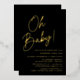 Einfache Einladungen mit Babydusche mit "Oh Baby!" in einem kühnen goldenen Drehbuch mit schwarzem Hintergrund. Die minimalistischen Einladungen für die Babydusche mit dem Namen der Mutter und den Details der Dusche. Die Babyduscheinladungen mit schwarzer und goldener Folie kehren zurück, um Ihr Foto und Ihren Wunschtext anzuzeigen. Die Einladungen sind perfekt für geschlechtsneutrale Babyduschen!