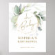Oh Baby Dusche Willkommensschild Poster Dieses schöne Design zeigt Eukalyptus-Blätter und Goldtypografie. Haben Sie ein perfektes Party mit Oh Baby Eukalyptus Baby Dusche Begrüßungszeichen. Personalisieren Sie Ihre Daten oder klicken Sie auf "Weitere Anpassungen vornehmen", um Schriftart Stile, Größe und Farben zu bearbeiten.