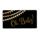 Oh Baby Duschwasser Flaschen Etiketten mit hübsch goldenen Banner und goldenen Glitzer Oh Baby Drehbuch auf einem schwarzen Hintergrund. Diese Babyduschflaschen-Etiketten sind nicht wasserdicht.