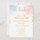 Adorable Oh Baby Gender offenbaren Einladung . Junge oder Mädchen, was werden wir haben? Gold Spritzer mit Pinks und Blues.