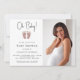 Die Babydusche dieses modernen Mädchens Die Einladung ist mit niedlichen Babyfüßen in rot-rosa Glitzer dekoriert und die Worte, Oh Baby! in stilvoller Typografie. Einfach anpassbar. Ersetzen Sie das Foto durch Ihr eigenes.