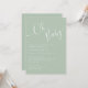 Für diejenigen, die ein modernes minimalistisches Design für Ihre Babydusche suchen, ist diese Einladung perfekt für Sie. Das einfache Design verfügt über eine hellgrüne Karte mit oh Baby in weißer Schrift Typografie. Personalisieren Sie Ihre wichtigsten Daten, einschließlich Name der Mutter sein, Datum, Uhrzeit, Ort, UAWG und Registrierungsinformationen.