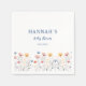 Wildblume Genuss für den Kleinen Sonnenschein: Personalisierte Party-Servietten mit Blumendesign für Ihre Babydusche Mit unseren personalisierten Party-Servietten können Sie Ihre Feier mit einer ganz besonderen Touch abschließen: Mit einem wunderschönen Blumendesign können diese Servietten mit Ihrem Namen und Babydusche-Datum in einem modernen Schriftart personalisiert werden und so einen einzigartigen und unvergesslichen Rahmen für Ihren besonderen Tag schaffen.