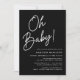 Einfache Einladungen mit Babydusche mit "Oh Baby!" in einem fett weißen Skript mit schwarzem Hintergrund. Die minimalistischen Einladungen für die Babydusche mit dem Namen der Mutter und den Details der Dusche. Die schwarz-weiße Babydusche-Einladungen kehren zurück, um Ihr Foto und Ihren eigenen Text anzuzeigen. Die Einladungen sind perfekt für geschlechtsneutrale Babyduschen!