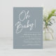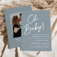 Einfache Einladungen mit Babydusche mit "Oh Baby!" in einem fett weißen Skript mit einem staubigen blauen Hintergrund. Die minimalistischen Einladungen für die Babydusche mit dem Namen der Mutter und den Details der Dusche. Die staubblauen Babyduschen-Einladungen kehren zurück, um Ihr Foto und Ihren eigenen Text anzuzeigen. Die Einladungen sind perfekt für geschlechtsneutrale Babyduschen!