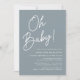 Einfache Einladungen mit Babydusche mit "Oh Baby!" in einem fett weißen Skript mit einem staubigen blauen Hintergrund. Die minimalistischen Einladungen für die Babydusche mit dem Namen der Mutter und den Details der Dusche. Die staubblauen Babyduschen-Einladungen kehren zu einem soliden, staubblauen Hintergrund zurück. Die Einladungen sind perfekt für geschlechtsneutrale Babyduschen!
