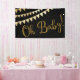 Oh Baby Duschbanner mit hübschen Goldbunte und Gold Glitzer Oh Baby Drehbuch auf einem schwarzen Hintergrund. Sie können Text zu personalisieren hinzufügen. Dies ist ein gedrucktes Banner ohne echte Folie, Glitzer, etc.