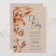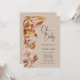 Diese elegante und rustikale Herbstdusche mit Babydusche bietet handgemalte Blätter in Aquarellfarben, Orange und Terrakotta, cremefarbene und beige Dahlien sowie wunderschöne rostfarbene Rose. Die Rückseite der Einladung hat einen einfachen taupe Hintergrund mit einem koordinierenden Bouquet.