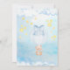 Cute baby shower invitations for baby boy featuring an adorable teddy bear in a hot air balloon, stars and clouds.