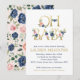 Oh Baby Watercolor Navy & Coral Floral Baby Dusche Einladung
