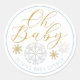 Celebrate your winter baby shower with this elegant Oh Baby Winter Wonderland favor sticker, designed in soft blue and gold with delicate snowflake details. This classic round sticker adds a polished finishing touch to baby shower favors, thank-you bags, and party packaging.