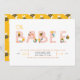 So niedlich! Dieses Design der Babydusche (kein Wortspiel!) ist mit dem Wort "Babee" in rosa Buchstaben mit Bienen und Blume dekoriert. Auf der Rückseite der Einladung befinden sich niedliche Bienen, die über einen gelben Hintergrund fliegen. Kontaktieren Sie Designer für passende Produkte. Copyright Elegant Invites, alle Rechte vorbehalten.