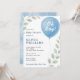 "Oh Boy" PHOTO Eucalyptus Blue Balloon Baby Shower Invitation | Personalized Picture & Modern Greenery Boy Invite