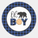 Oh Boy Bear Blue Buffalo Kariert Baby Dusche Runder Aufkleber
