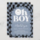 Oh Boy! Blue Checkered Happy Face Baby Shower Einladung