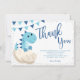 Eine niedliche Dinosaurier navy blauen Babydusche Wohnung danke Karte. Design verfügt über einen Banner, Dinosaurier Baby in einer Ei-Illustration und Konfetti Dot Rand. KOSTENLOSE FARBVERÄNDERUNGEN AUF ANFRAGE