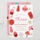 This cute "oh christmas three" girl's 3rd/third birthday invitation features a white background with christmas motifs, such as a tree, present, cupcake, bird, acorn, and ornaments in pink and red shades. The reverse side features a pink background with Christmas tree motifs. Personalize it for your needs. You can find matching products at my store.