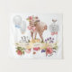 Die Tapisserie der kleinen Babydusche ist mit einem bezaubernden Hirsch mit Blume, Ballons und Band geschmückt. "Ach, ihr ist fast hier!"