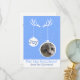 Flat Grußkarte, dass Sie Ihr Foto hinzufügen können und schreiben Sie Ihre Nachricht auf der Rückseite. Hirschgeweih und Ornament-Design mit blauem Hintergrund. Passende Adressetiketten und mehr in diesem Design.
