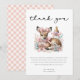 Oh, Deer! Pink Floral Baby Dusche Vielen Dank Einladung beinhaltet Dankeschön Gruß, die leicht geändert werden können. Die Rückseite des Dankes ist rosa und weiß Gingham.