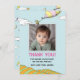 Ein herzliches Dankeschön für die Orte, die sie gingen, und für eine Geburtstagsparty so wunderbar verbracht! Diese skurrile Karte erfasst den Geist des Abenteuers mit einem charmanten Design, inspiriert vom klassischen Dr. Seuss Buch "Oh, die Orte, an die du gehen wirst!" Es ist der perfekte Weg, Dankbarkeit für all die wunderbaren Geschenke und Liebe zu teilen, die Ihr Kleiner auf seiner nächsten großen Reise erhalten hat. Mit viel Platz, um ein wertvolles Foto hinzuzufügen, ist es ein süßes Memento eines wirklich besonderen Tages.