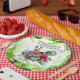 Set von acht 9" Papier-Tellern mit einem Vintagen Bild der Alice im Wunderland des Mad Hatter und März Hare, die Dormaus in einen Teekessel in einem kichelgrünen Garten füllen. Siehe dazu passende Süßigkeiten, Krug, Teekanne und Untersetzer. Sehen Sie sich die gesamte Wonderland Plate Kollektion im NAHRUNGSMITTEL/BEV an. | Abschnitt Geschirr.