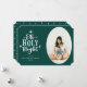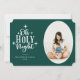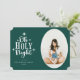 Whimsikale Typografie, traditionelle Urlaubsziffer "Oh Heilige Nacht", Weihnachtsfotokarte. Die Karte bietet festlich grüne Hintergründe, Weißtext, ovales Foto für Single-Foto auf der Vorderseite, Vorlagentextzeilen für Name, Jahr, Nachricht und Familiennamen.