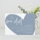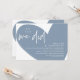 Mit unserem modernen staubblauen, niedlichen Herzform-Design (Oh ja, das haben wir getan) für Hochzeitsfeiern, verkünden und teilen Sie Ihr Glück immer wieder im Stil. Es ist ideal für Paare, die sich entschieden haben, ihren besten Tag zu feiern. Mit seinem ausgeklügelten und spielerischen Design wird diese Einladung den Ton für ein unvergessliches Ereignis Set. Die Einladungskarte bietet ein modernes und minimalistisches Design-Thema, das Ihren Feiern eine Touch zeitloser Eleganz verleiht. Designed by TeeshaDerrick