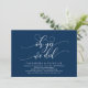 Markieren Sie den Anfang Ihrer Ewigkeit mit Eleganz mit unserer zeitgenössischen marineblauen Hochzeitsfeier Einladungskarte "Oh ja, wir haben". Diese Einladung eignet sich perfekt für Paare, die ihren fröhlichen Anlass ausdehnen und mit einem Hauch von Verspieltheit die Bühne für eine unvergessliche Veranstaltung geben. Das zeitlose Design des Drehbuchs verleiht Ihren Festlichkeiten eine Touch raffinierten Charmes. Diese von TeeshaDerrick entworfene Einladung verspricht, Ihre Liebe schön zu erfassen.