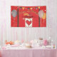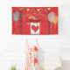 Dieses bezaubernde Geburtstagsbanner ist sicher das Gespräch des Party! Rot schimmernder Hintergrund mit handbekleideten "Maus" Händen in Herzform, umgeben von Ballons, Sternen und Party.