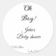 oh Junge Mädchen Babydusche geben den Namen Datum Runder Aufkleber