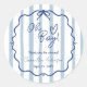 Niedliche und moderne Babyduschaufkleber mit staubblauen und weißen Streifen, handgezeichneter Wellenstruktur und blauem Band. Einfache, aber skurrile Teller rund um das Party, perfekt für eine Mutter, die eine elegante Dusche will, ohne das süße und lustige Element ihrer fröhlichen Feier zu beeinträchtigen.