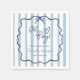 Niedliche und moderne Babyduschservietten mit staubblauen und weißen Streifen, handgezeichnetem, gewelltem Rahmen und blauem Band. Einfache, aber skurrile Party-Servietten, ideal für eine Mutter, die eine elegante Dusche will, ohne das süße und lustige Element ihrer fröhlichen Feier zu beeinträchtigen.