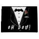 Anpassbar "Oh Junge!" Das Tuxedo Design zeichnet sich durch das Aussehen eines Tuxedo auf beiden Seiten des Produktes aus. Text ist anpassbar und kann durch einen Namen oder eine andere Formulierung ersetzt werden. Konzipiert, um sich mit dem "Oh Junge, das ist ein Junge!" abzustimmen. Babydusche.