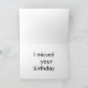 Als Geburtstagskarte, die für vermisstes den Geburtstag der Empfängers entworfen sich entschuldigt.