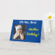 Feiern Sie den Geburtstag Ihres Bruders mit einer lustigen Nachricht: "Oh nein! Noch ein Geburtstag?" Das niedliche gruselige Mädchen sendet ein skurriles Bild einer Schwester in einem kühnen, gelben und blauen, modernen Design. Öffnen Sie die Karte, um einen glücklichen Geburtstag "Cheer up!" Vers der frohen Wünsche zu finden.