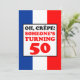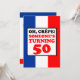 Oh Krepp! Jemand, das 50 lustig dreht, laden die Aufmachung der Farben der französischen Flagge ein. Groß für einen französischen Mann oder eine Frau, die fünfzig drehen. Laden Sie Gäste zu einem 50. Meilenstein-Party mit diesen Franzosen, Kreppwortspieleinladung ein.