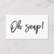 Moderne und einzigartige Visitenkarten für Fotografen oder Fotografen bieten eine klassische Schwarz-Weiß-Farbpalette. Die weiße Vorderseite zeigt "oh Snap!" in der handgeschriebenen schwarzen Pinselspitze mit Schreibschrift, auf der Rückseite sind die Kontaktdaten in weiß auf schwarz.
